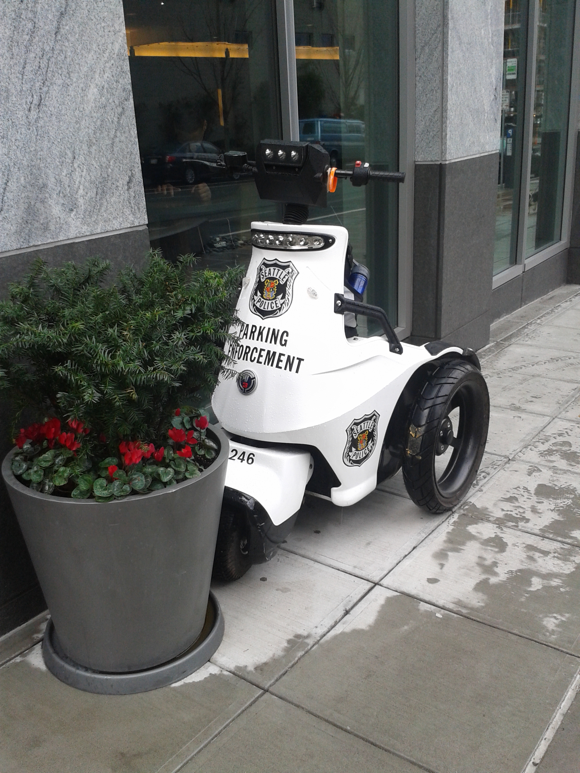 That’s . . I guess it’s a souped-up Segway. I’ve subsequently seen them zooming around, minding traffic. Doesn’t quite fit somehow.